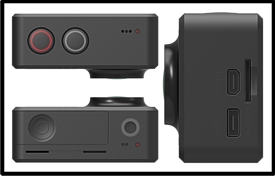 Auf der Vorderseite befindet sich die Linse: eine „asphärische“ Linse…aaaaha… 🙂 Kurz: asphärisch beschreibt die Form der Linse (wer’s genau wissen will: hier gibt’s die exakte Beschreibung). Diese Linse sorgt dafür, dass wir den für Actioncams bekannten Superweitwinkel („Fish-Eye“) hinbekommen.